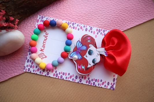 Kamule Holi Theme Glitter Breaded & Unicorn Embellished Hair Bow