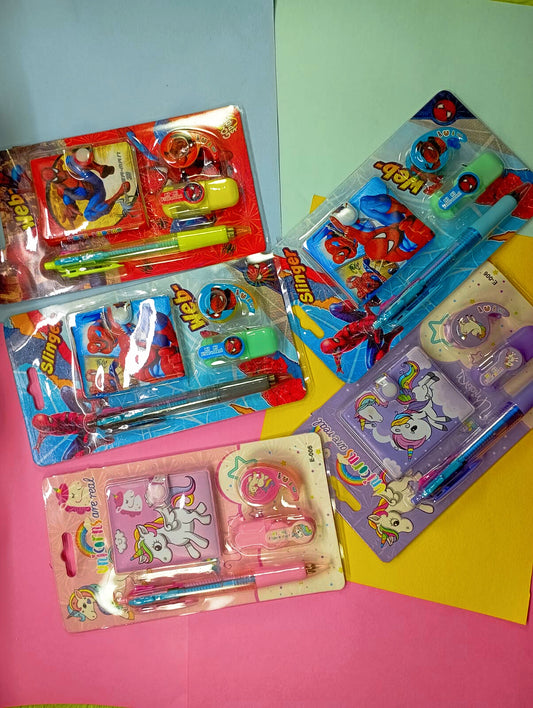 Unicorn Stationary set for Kids /School Kids / Back to School Supplies for Kids / Perfect Gift for First Time Going Kids / Cartoon Character Printed Stationary Set (Colour-Pink)(Item Qty-04)- Purple-Unicorn