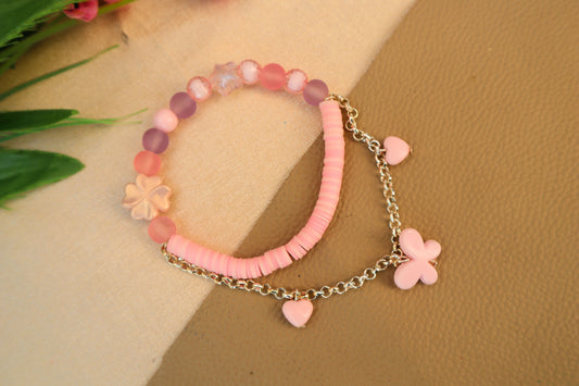 Kamule Butterfly Charmed and fimo beads bracelet - Light pink