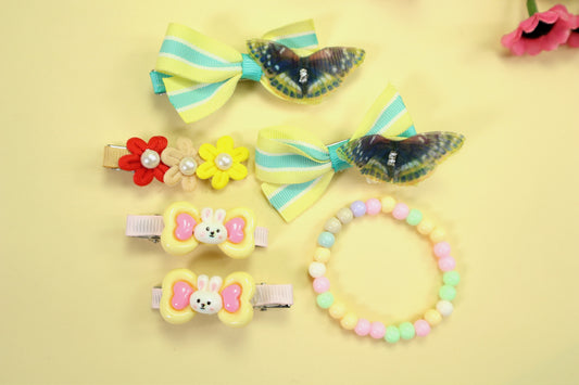 Kamule bunny clip and flora set of-5 -yellow