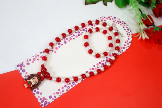 Kamule Christmas Theme Detailed Christmas Princess Necklace and Bracelet Set Pack of 2- Red and White