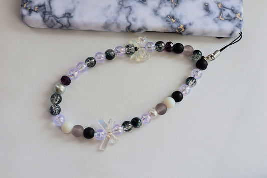 Kamule Glossy black, matte grey, and shimmering pearl beads phone charm