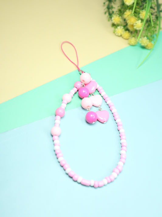 Kamule Pink & White Beaded Phone Charm