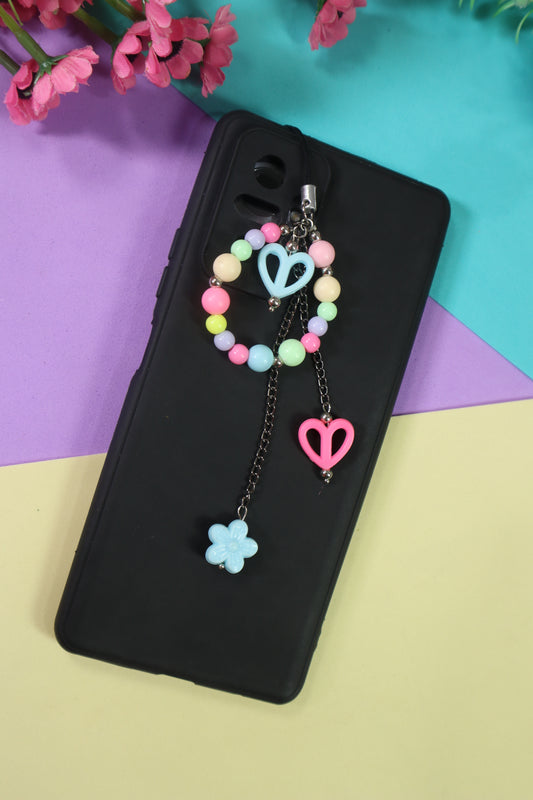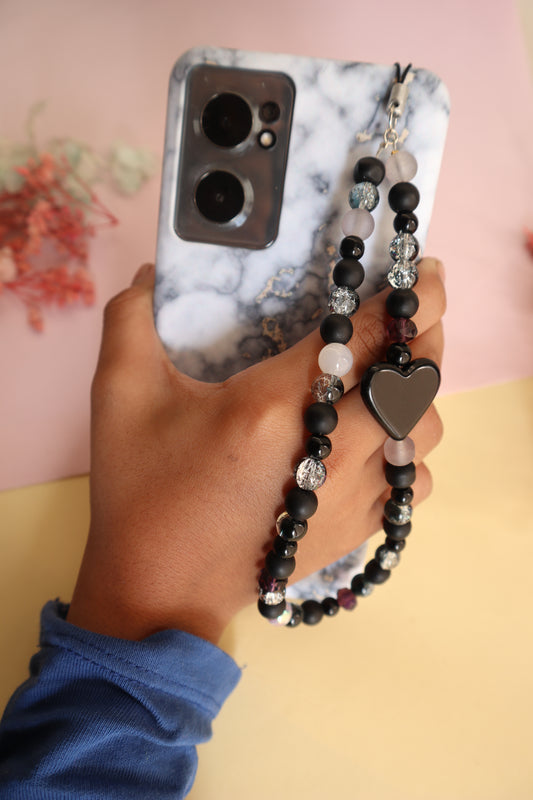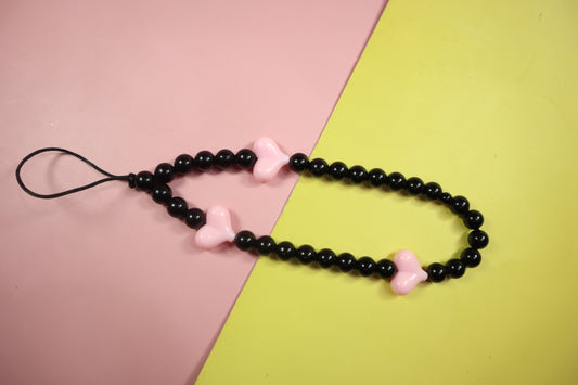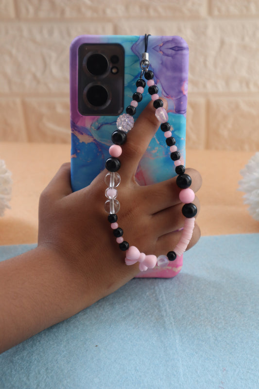 Kamule Black & pink beads striking contrast phone charm