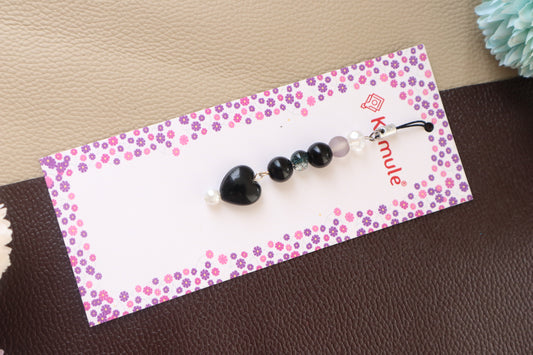 Kamule Sleek black heart pendant phone charm