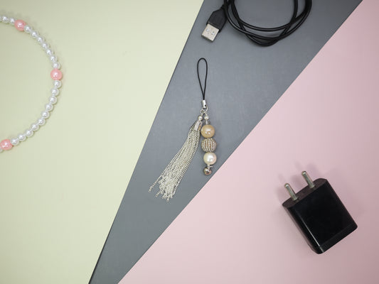 kamule Pearl Mobile Phone Charm Metal Beaded Charm